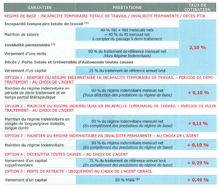 Couvre deux risques : la prévoyance (maintien de salaire) et la santé (mutuelle). C'est une couverture sociale qui vient en complément de la sécurité sociale et du statut de la FPT, pour permettre aux agents de faire face aux conséquences financières liés à une maladie, un accident…